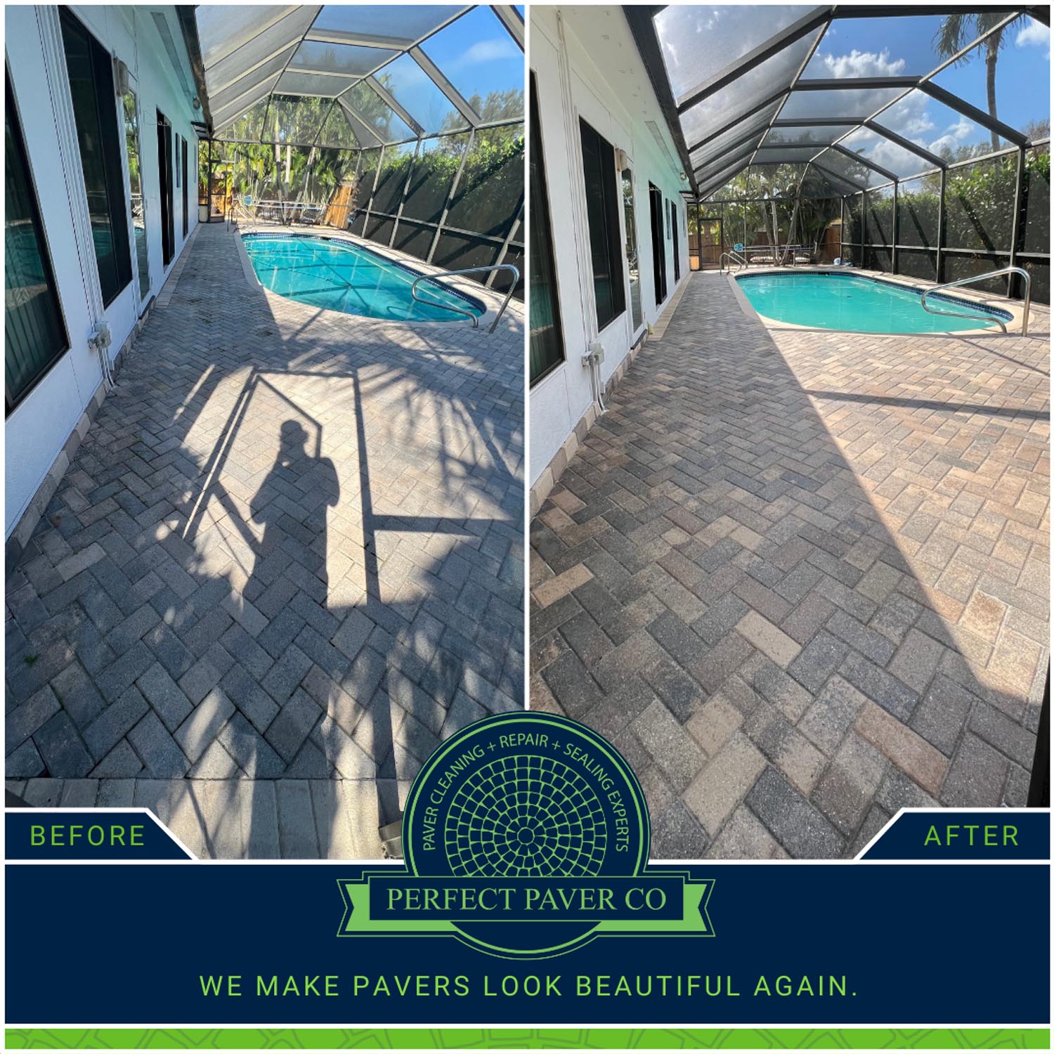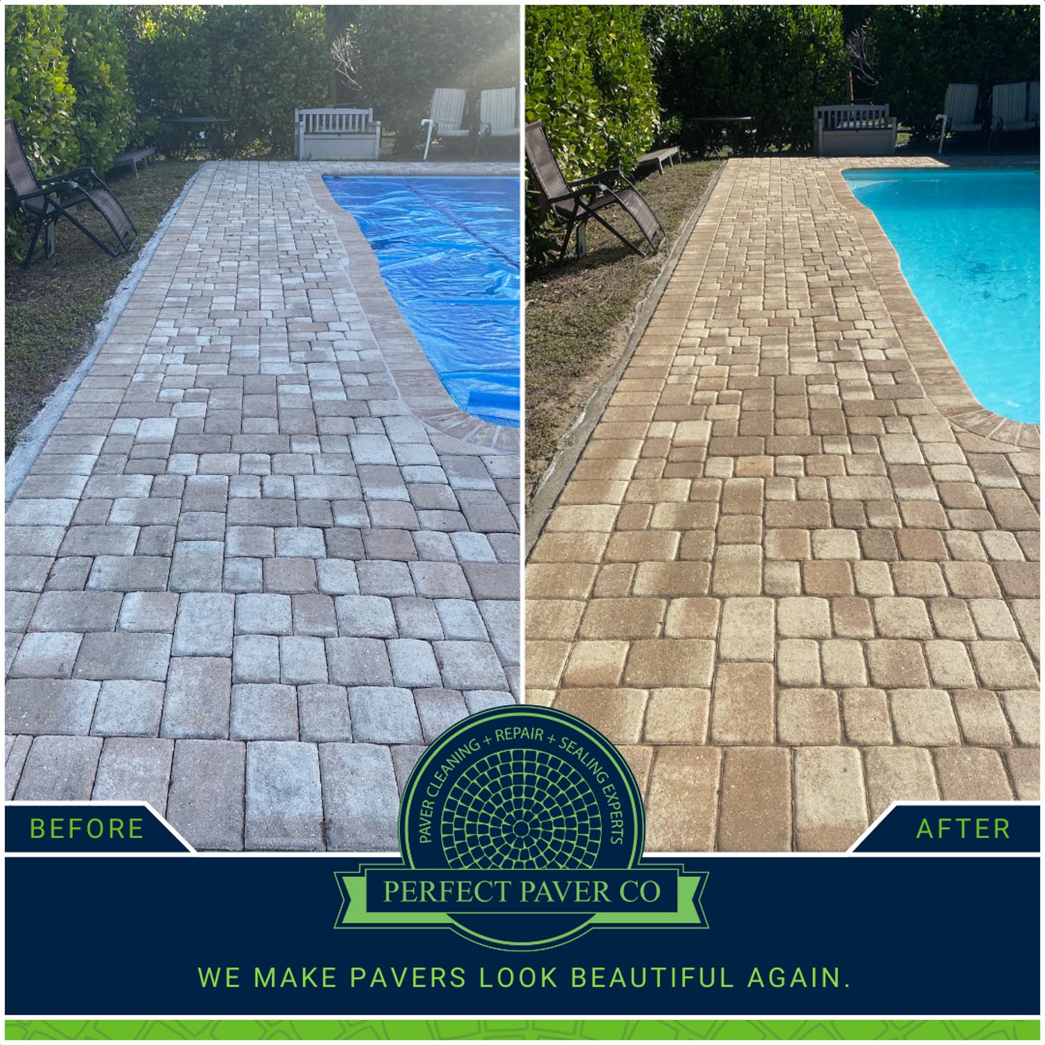Before-and-after paver pictures from patios, driveways, walkways, pool decks, and more.