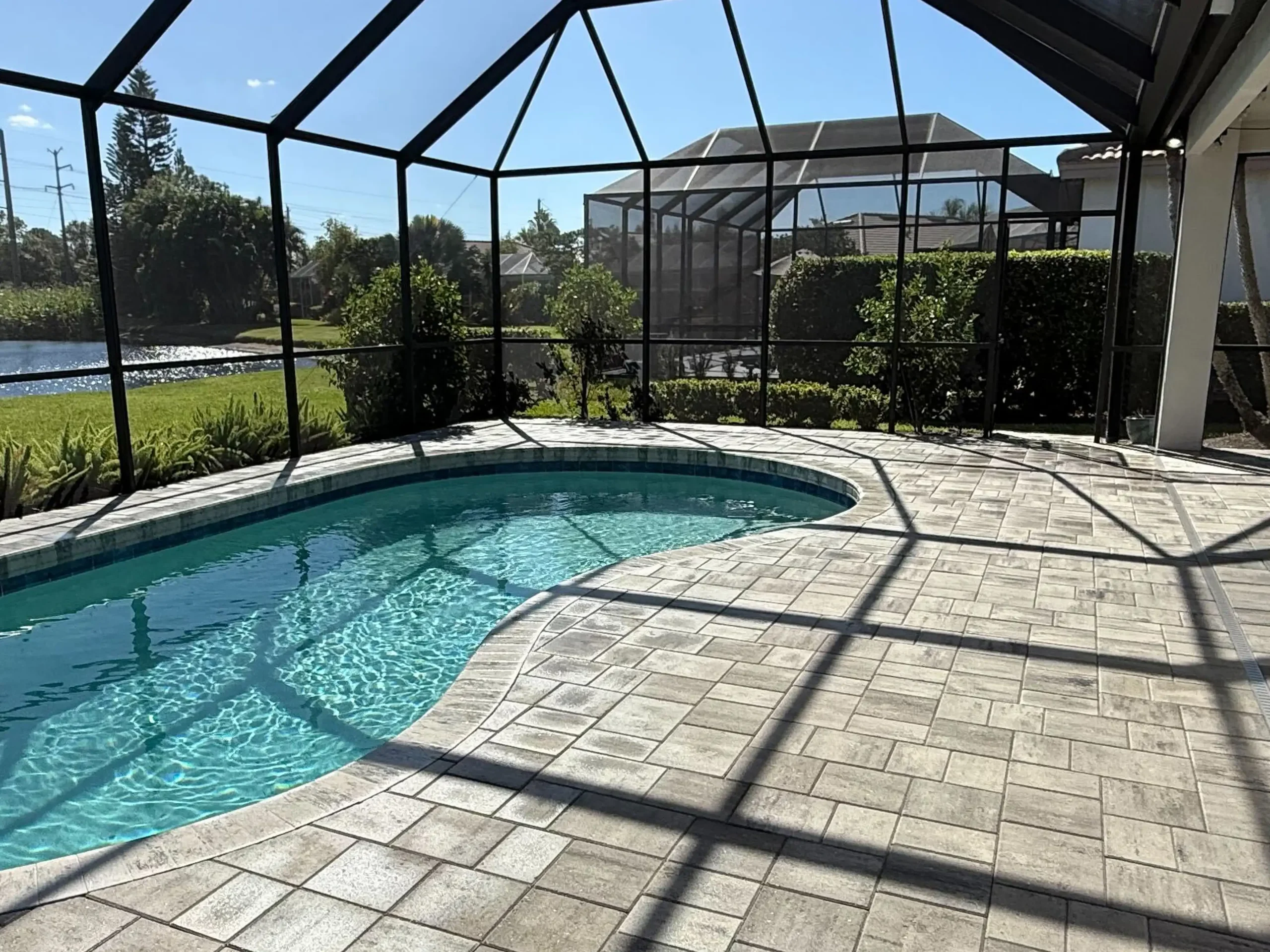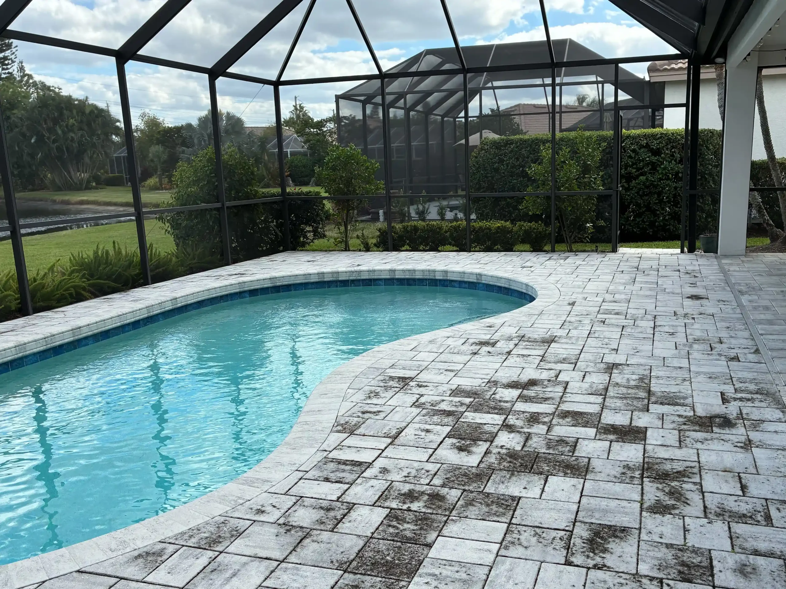 Yes. Our steam-based paver washing service is especially effective for pool decks because it removes slippery algae and organic buildup without blasting joint sand or destabilizing the surface—something that can happen with aggressive pressure wash pavers methods.