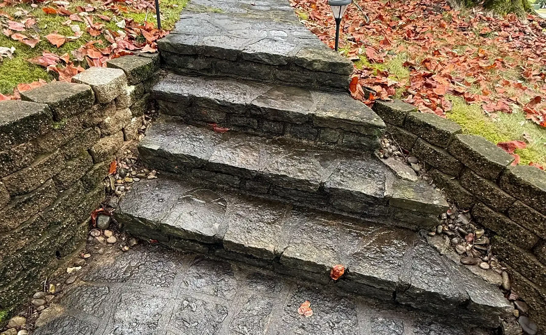 - The team then used hot-water steam cleaning to remove years of organic buildup from the pavers, followed by joint cleaning to clear deep-rooted debris.
