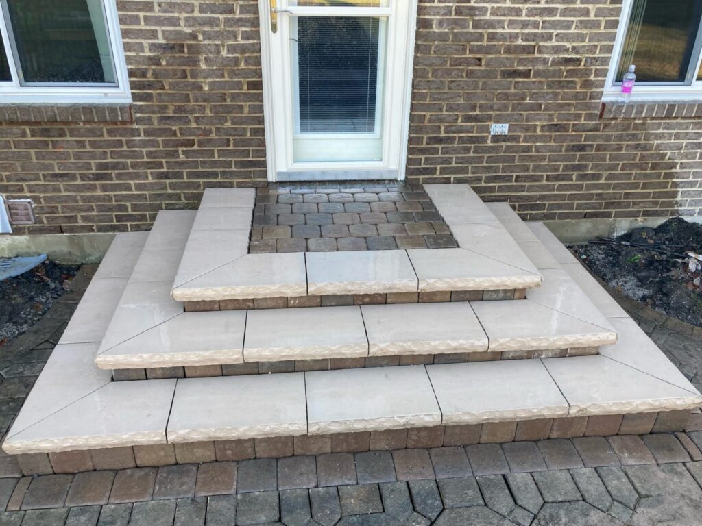 We completed the repair of these paver steps during the winter months. We’ll be returning the following spring to perform our cleaning and sealing process to the pavers and new steps.