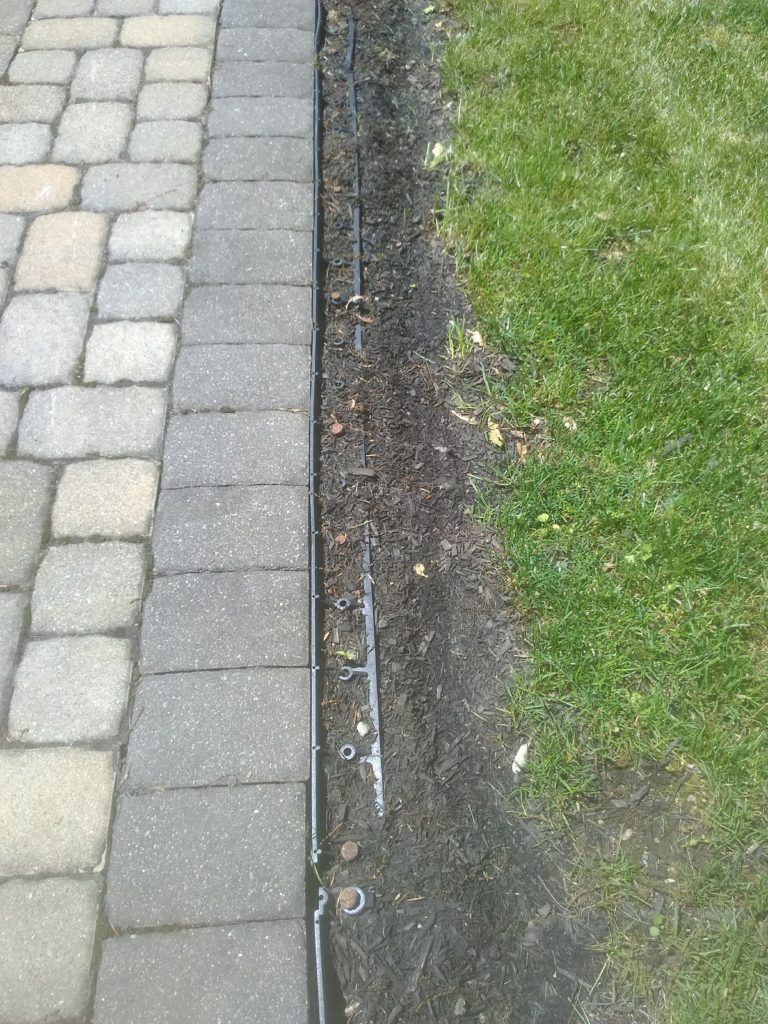 After Permaedge is in place, we replace the surrounding area with dirt, grass, or mulch, effectively concealing the edge restraint system from view (Photo 8 and 9 showcase the final result).